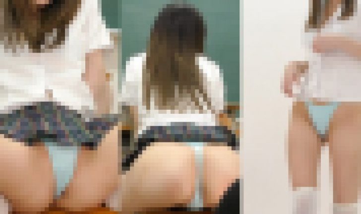 スレンダーながらFカップ美乳の持ち主でタイトフィットなニットを着てると胸の膨らみでドキドキするのですが、今回はタータンチェックのミニスカに白ブラウス、ニーハイソックスに水色のマイクロTバックを着用してもらいコスプレ撮影。