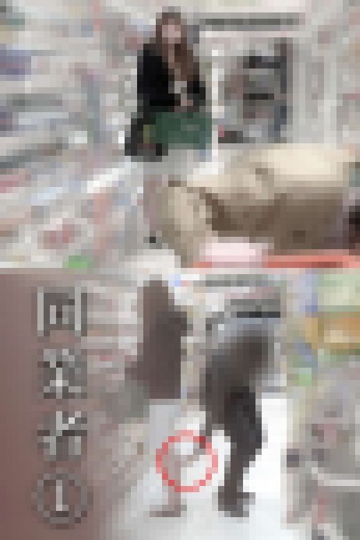 同業者バレそして店員バレ/5回連続、計9回のマン毛ハミ出しの食い込み純白パンチラ【禁断の逆さ撮り】