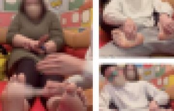 足拓で汚れた足を撮影しています。