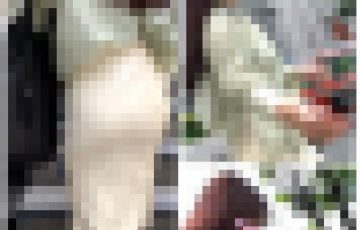 腰が浮きシミパンティラインを背後から捉えます。