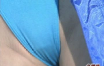 脚を開かせて水着の上からクリトリスを擦ってあげると、「ダメですよ…」と言いながらもだんだんと吐息が荒くなり感じてきているのが分かります。